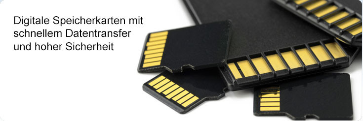 Wir bieten Ihnen sämtliche SD-, SD HC- und MMC-Karten in allen gängigen Ausführungen. Die auf den Flash-Speichern duplizierten Daten können auf Wunsch mit einem temporären oder permanenten Schreibschutz versehen werden, ein